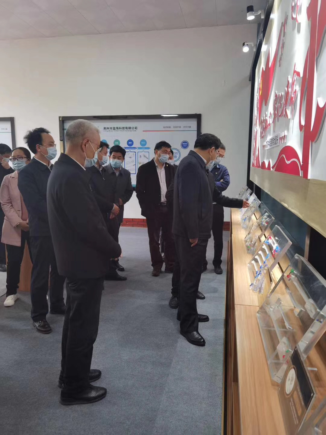 調研組一行參觀了公司的生產車間,深入生產第一線了解疫情防控措施和復工復產情況,詳細詢問了企業的產品、生產技術工藝、訂單銷售等,公司劉家興總經理為調研組詳細介紹了公司的現狀及未來發展的策略。同時表示,作為荊州市醫療器械的標兵企業,益海科技有限公司一直以來穩中求變,努力開發新產品,擴大自己在行業中的競爭力。